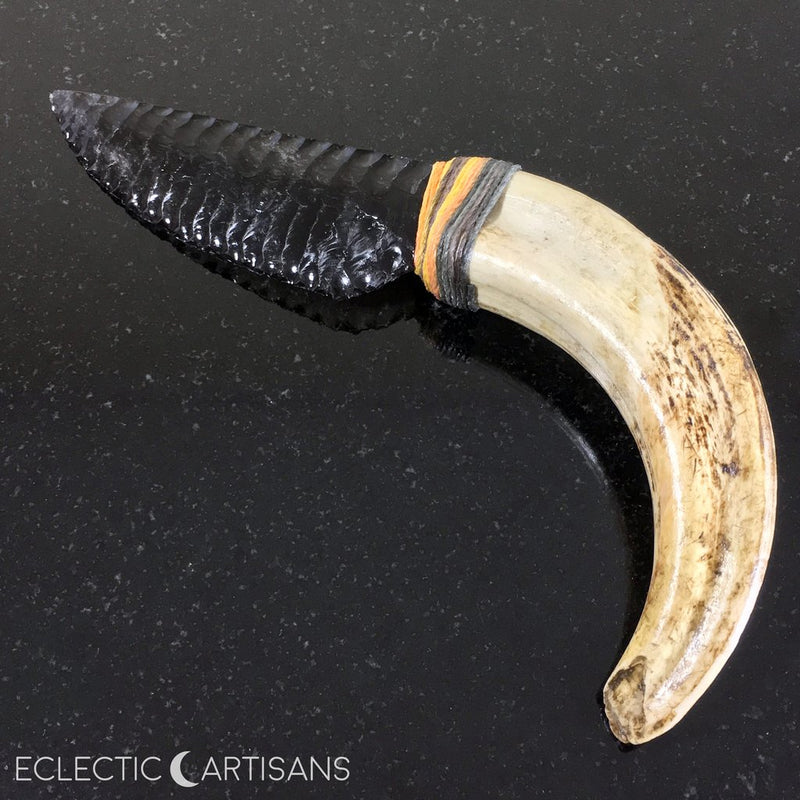 Aurora Mist Obsidian Blade Athame w/Wart Hog Tusk Handle - 11.00 inch