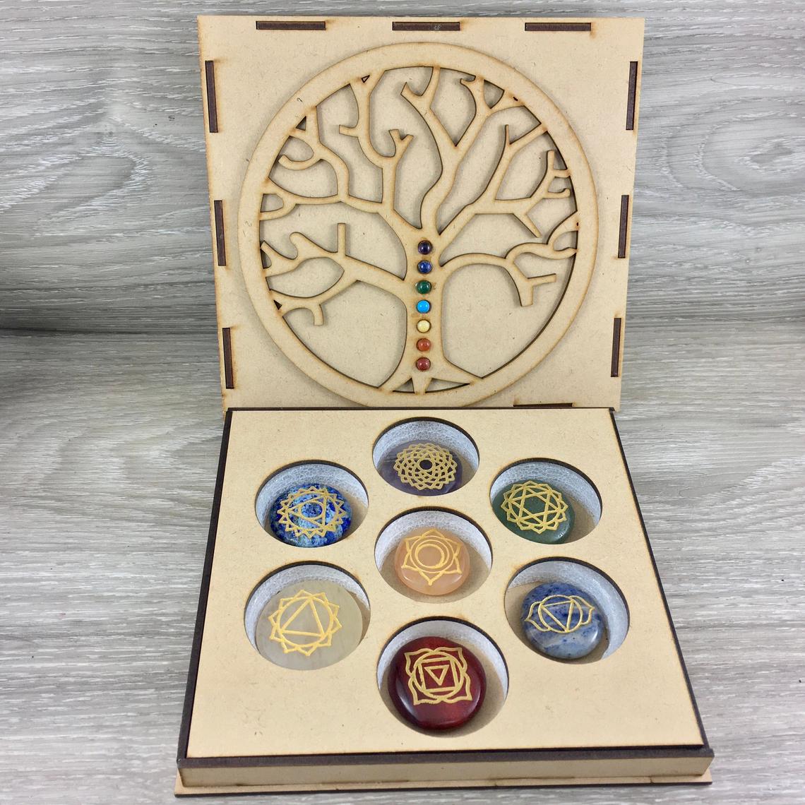 Deluxe 7 Chakra Palm Stone Set With Tree of Life Gift Box