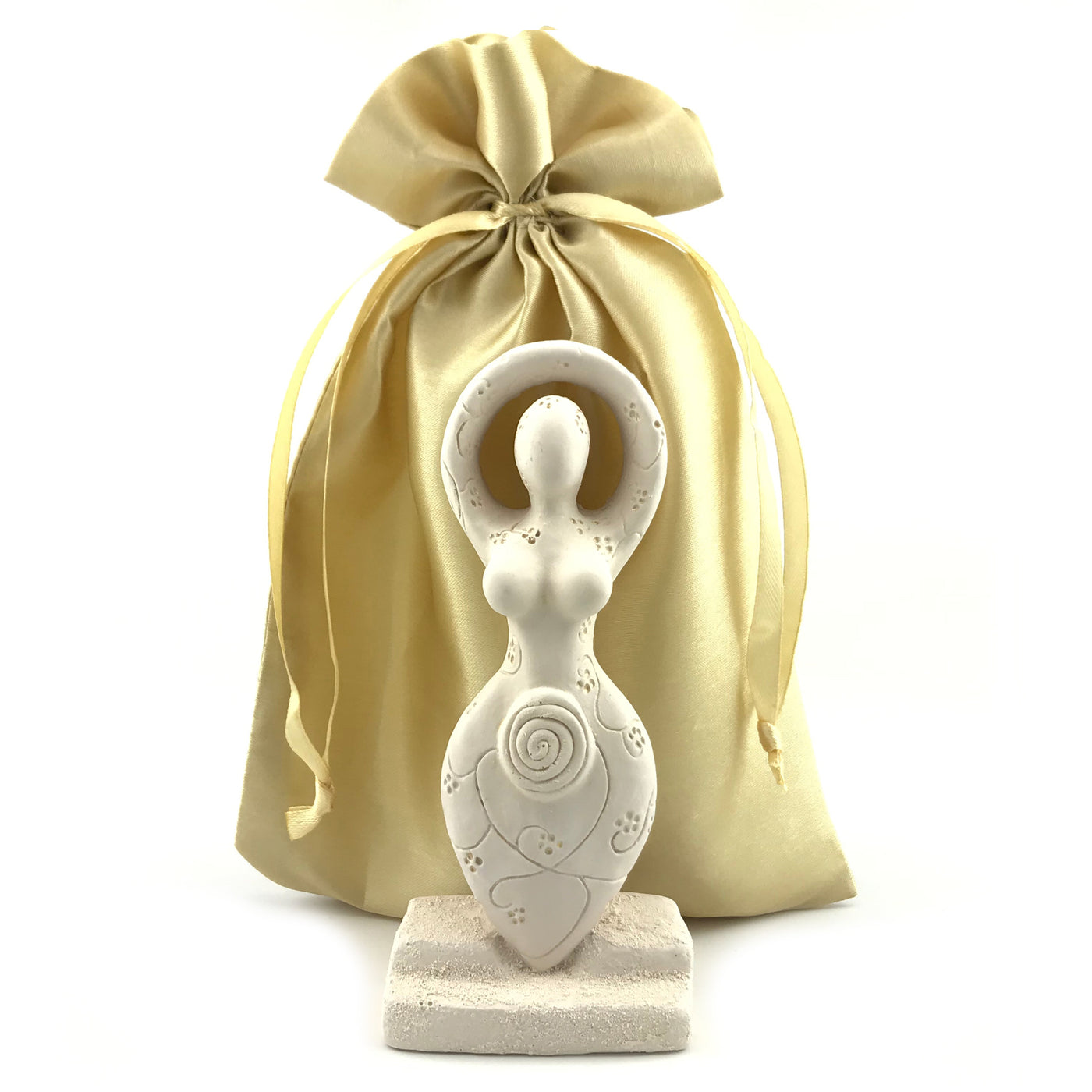 This offering bowl has been designed to resemble the Nature Goddess. Her arms surround the bowl as roots climb up from the base. She has been made with natural gypsum that contains no harmful chemicals and has been finished in a natural tone. The Goddess symbol is related to Mother Earth and the Divine Mother. She represents the all loving and n...