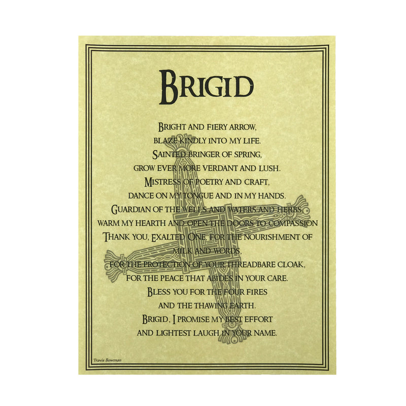Our Brigid Prayer Parchment contains a lovely sentiment to the "triple aspect Goddess." Connect with Brigid, the Celtic Goddess of light, life, fertility, forge and the hearth by reciting this prayer during your next Imbolc celebration, ritual or spellwork involving Brigid. Size: 8.5 x 11 inches This item was featured inside the 2018 Imbolc Sab...