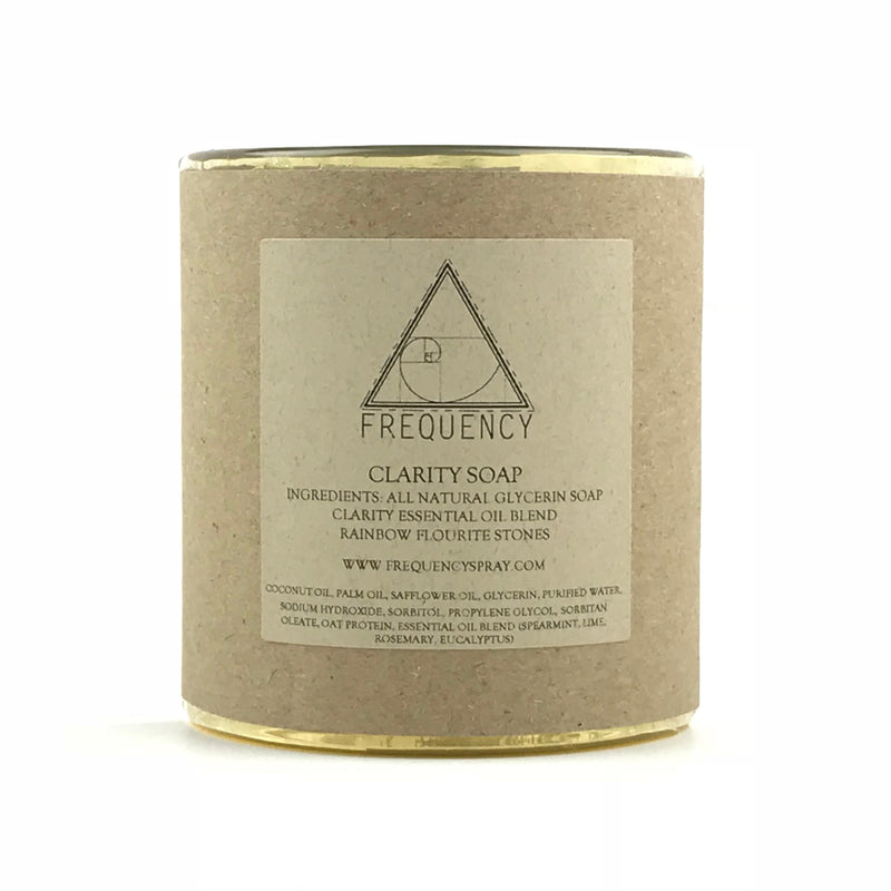 Clarity crystal infused soap by Frequency is made up of an all natural, invigorating, fresh blend of pure essential oils and is infused with real crystals to help you clear the cobwebs from your mind and refresh your thoughts. This sweet spearmint blend is grounded with woodsy rosemary and rounded out with fresh lime. A perfect soap for ritual b...