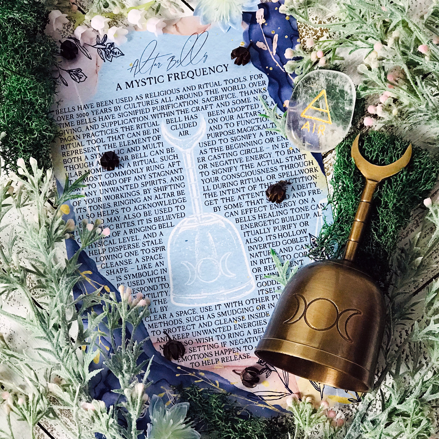 - Triple Moon Altar Bell Kit With Info Card and Satin Bag