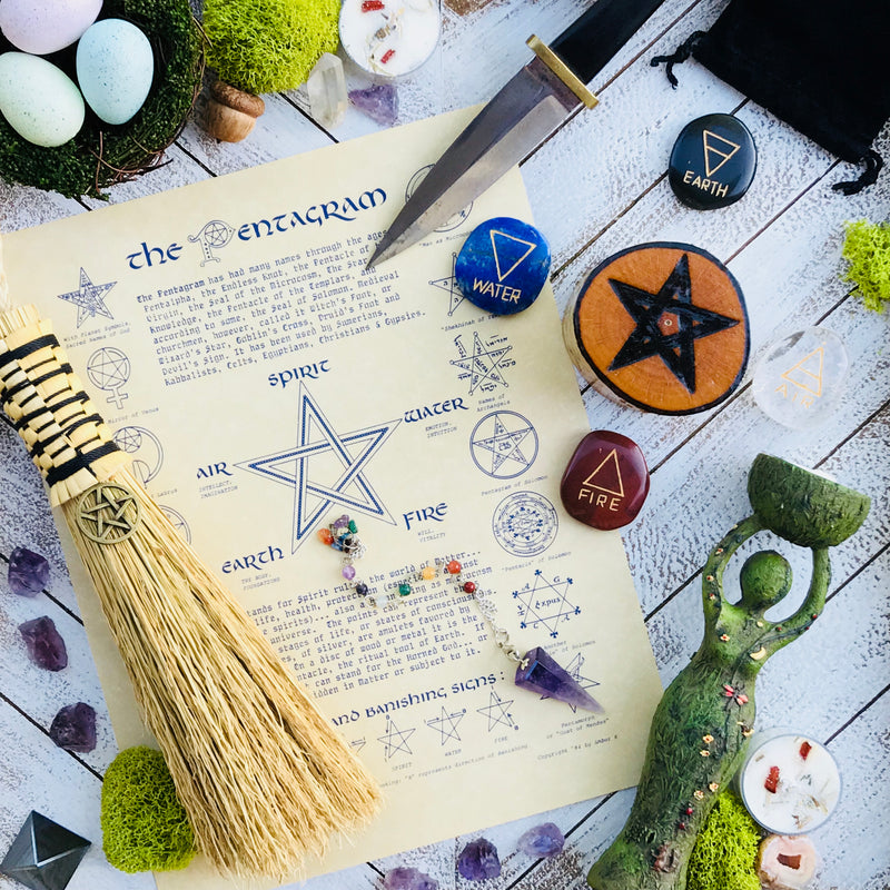 The pentagram, the five-pointed star image with its lines often interlaced, is typically enclosed within a circle; and thus, in most traditions, is a symbol of protection. The star is upright, having the single point on top, the ascended position. The top point represents true spirit, the other four points symbolize the elements of creation: Ear...