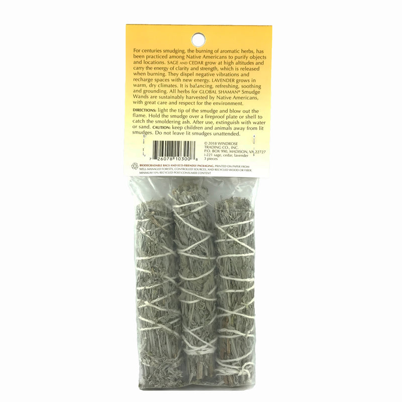 Sage, Cedar and Lavender Smudge Stick Set - 3 Pack